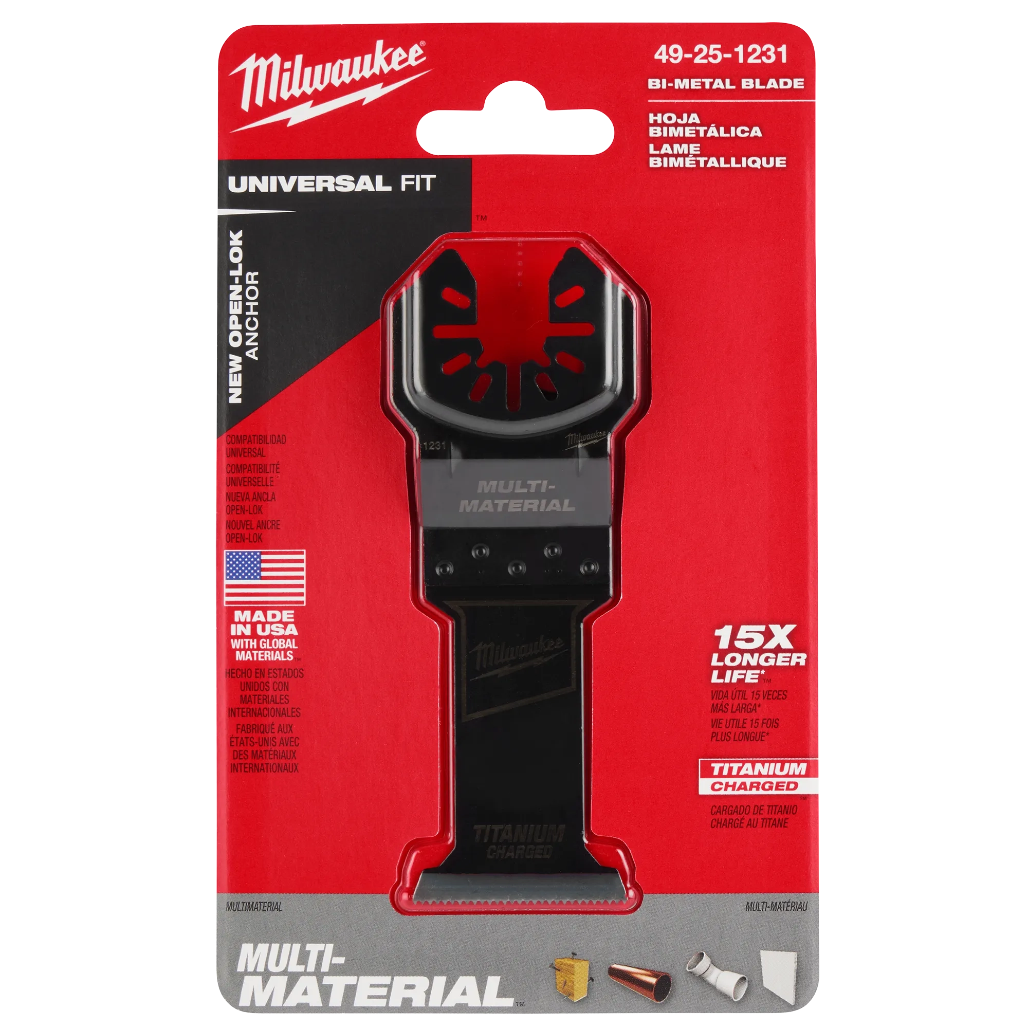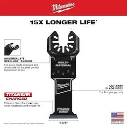 TITANIUM CHARGED™ bi-metal for up to 15X Longer Life vs High Carbon Steel Blades