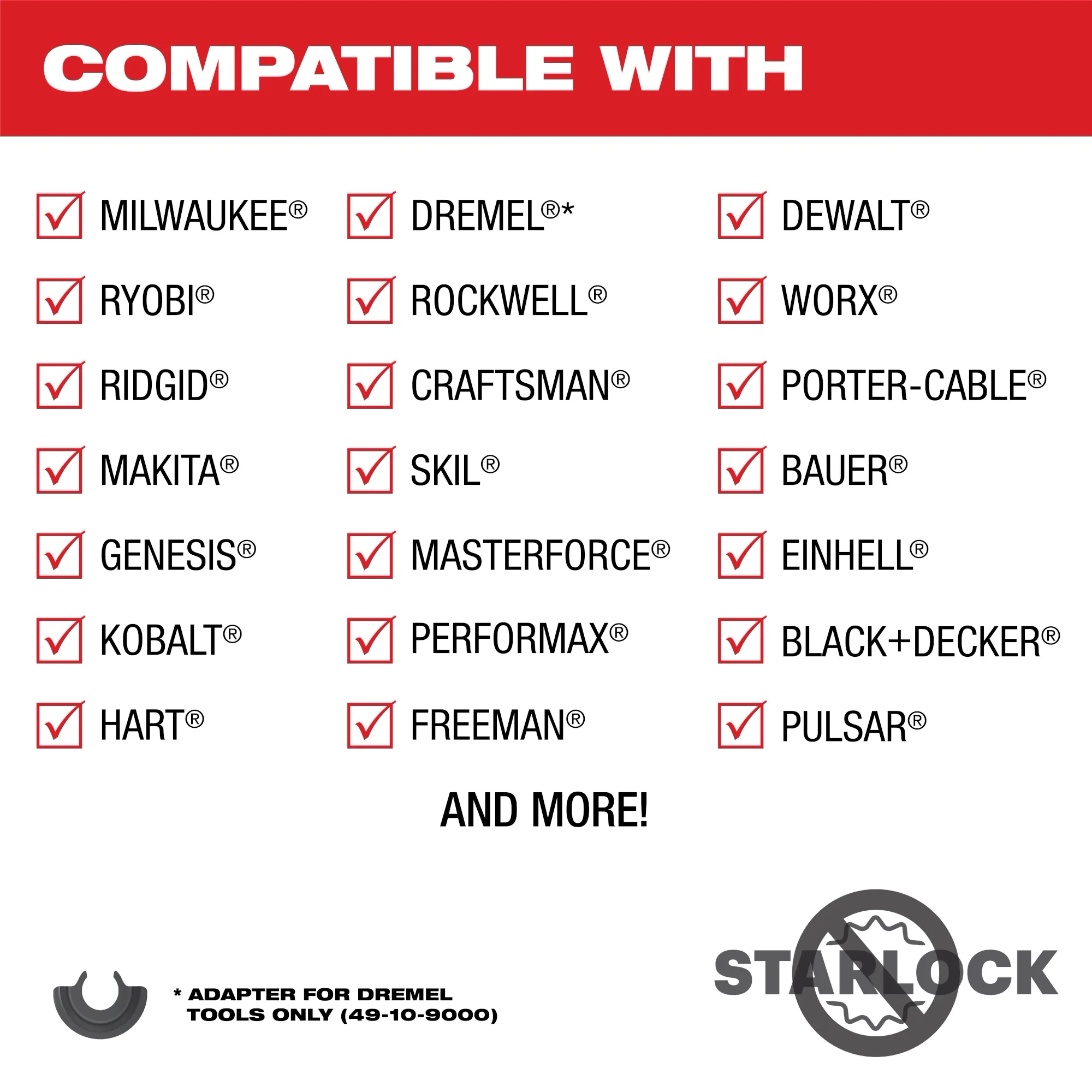 Universal Fit OPEN-LOK™ Anchor fits all major brands of non-starlock tools