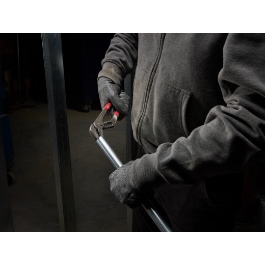 The Milwaukee® 12" Comfort Grip Straight-Jaw Pliers incorporate exposed metal handles (patent pending) and a precision ground pliers head for reaming pipe and punching electrical knock outs. The pliers’ teeth are hardened for secure grip over the life of the tool. Milwaukee® pliers feature slim profile over-molded comfort grips, which will not peel under jobsite conditions. All Milwaukee® pliers are forged for strength and feature rust protection for long life.