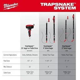 • Available accessories: TRAPSNAKE™ 6 ft. Toilet Auger Replacement Cable (48-53-3576) and TRAPSNAKE™ Toilet Auger Case (48-22-2577)