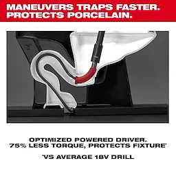The MILWAUKEE® M12™ TRAPSNAKE™ 6 ft. Toilet Auger Kit is the ideal solution for service plumbers and facility maintenance crews to unclog toilets and floor traps. Powered by the M12™ TRAPSNAKE™ Driver, the first powered unit optimized for the challenges of porcelain fixtures, this unit delivers power and speed to work through tough clogs in tight traps. Optimized electronics protect the fixture from the auger and allow the user to feel when engaged with a blockage to aid in retrieving. The M12™ TRAPSNAKE™ 6' Toilet Auger features several industry-firsts including a fixed rubber boot for maximum porcelain protection, an integrated locking mechanism that holds the cable in place for easy telescoping extension, and replaceable cables to maximize the longevity of the tool. As part of the TRAPSNAKE™ Porcelain Auger System, users can interchange the M12™ TRAPSNAKE™ Driver with the auger handle or use with other auger attachments for versatility and capabilities never seen before in a closet auger. This kit includes an M12™ TRAPSNAKE™ Driver, one M12™ REDLITHIUM™ CP 1.5 Battery Pack, and an M12™ Battery Charger.