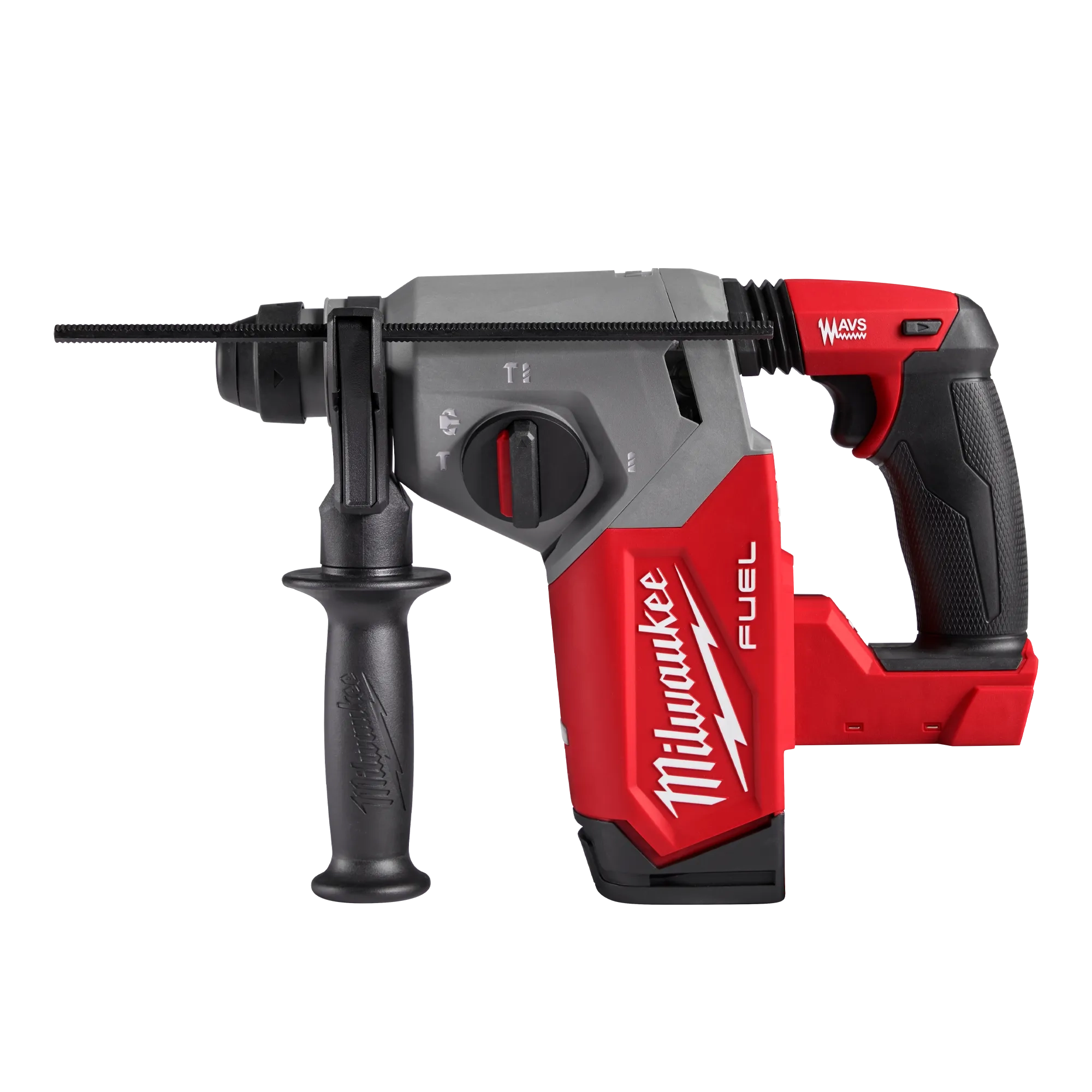 Our M18 FUEL™ 1" SDS Plus Rotary Hammer is the next generation of cordless rotary hammers delivering ultimate jobsite performance and productivity. The MILWAUKEE® M18 FUEL™ 1" SDS Plus Rotary Hammer is the fastest drilling rotary hammer in its class, includes AUTOSTOP™ Control for enhanced safety, and can drill up to (125) 3/8 in. x 2 in. holes per charge when paired with the M18™ REDLITHIUM™ HIGH OUTPUT™ XC6.0 Battery. The POWERSTATE™ Brushless Motor delivers you 2 ft-lbs of impact energy, 1,330 RPM, and 4,800 BPM, providing speed and power in the most demanding applications. REDLINK PLUS™ intelligence tool technology ensures maximum rotary drill performance and protects it from overload, overheating, and over-discharge. The M18™ REDLITHIUM™ HIGH OUTPUT™ XC6.0 Battery delivers 50% more power while running 50% cooler than the M18™ REDLITHIUM™ XC batteries. This hammer provides maximum control and enhanced safety with the AUTOSTOP™ Kickback Control. This feature prevents over-rotation if the tool gets bound up while you're drilling in rebar or hard aggregate. Our AVS Anti-Vibration System minimizes vibration for maximum comfort.