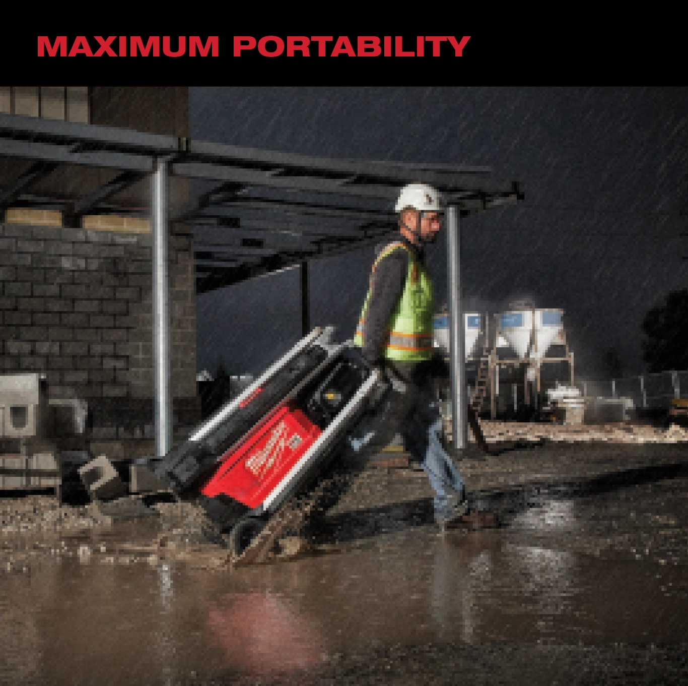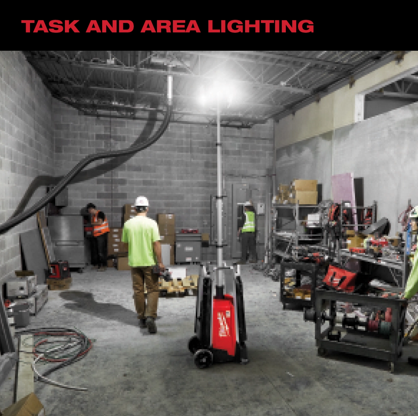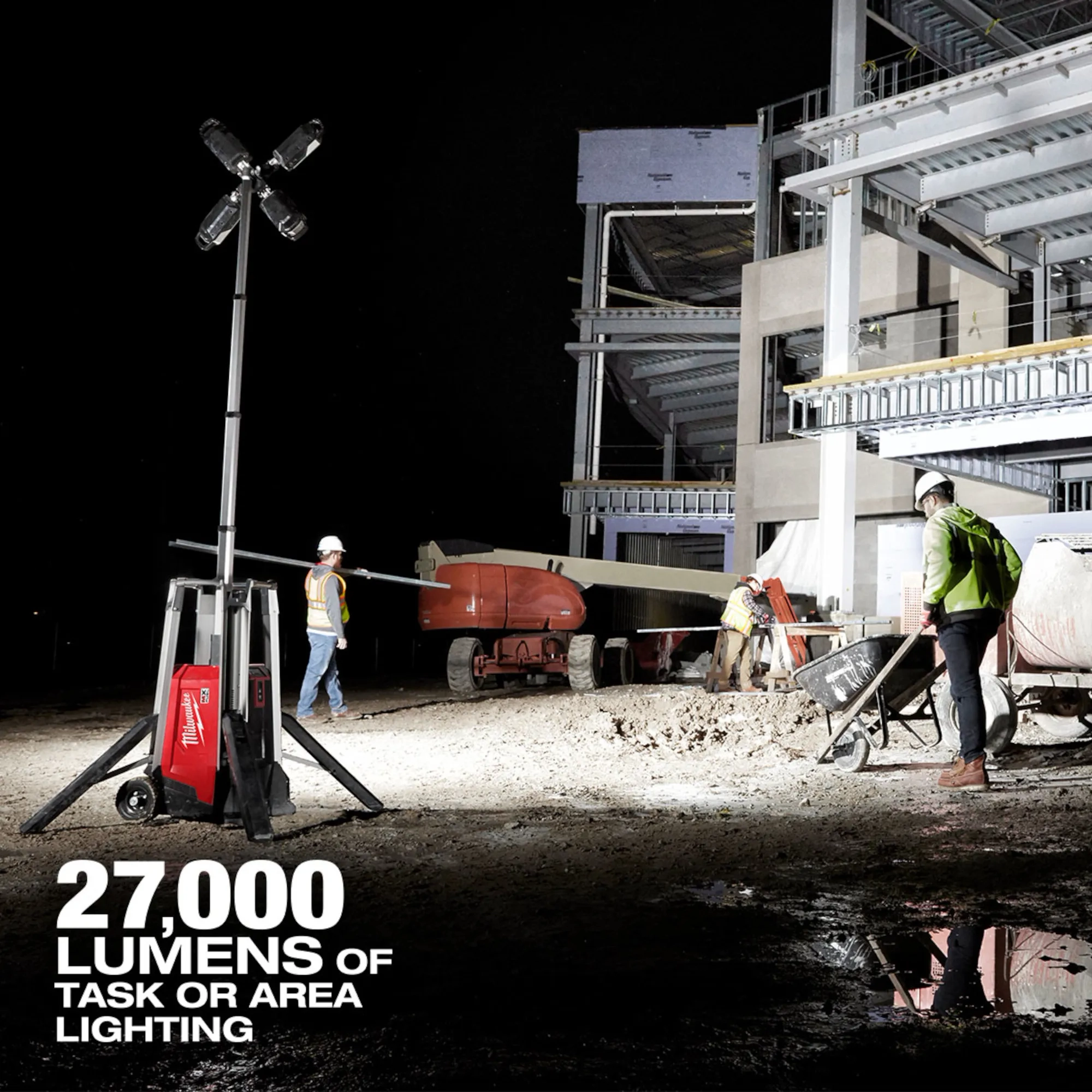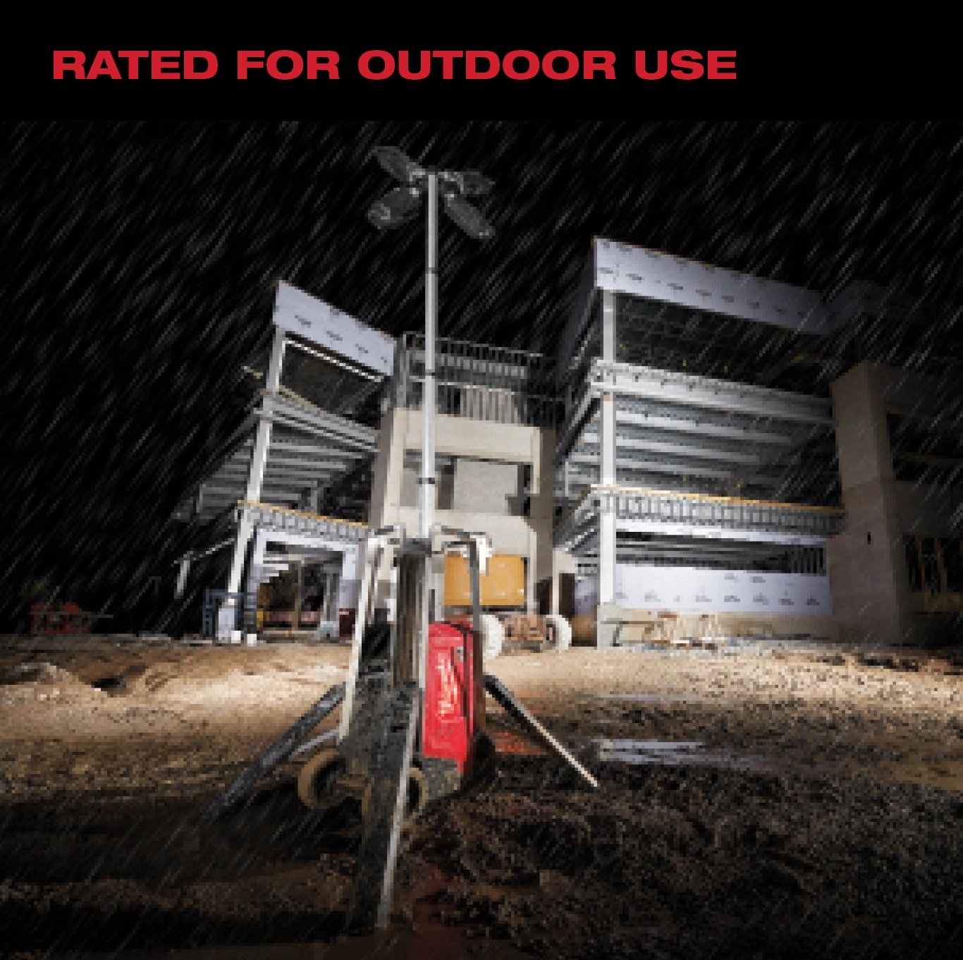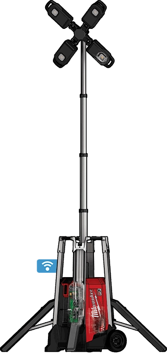 Our MX FUEL™ ROCKET™ Tower Light/Charger is the new way to light the site. It’s the most portable 10’ light for both indoor and outdoor use. The tower light provides up to 27,000 lumens of task and area lighting and withstands the harshest jobsite environments. The portable light tower provides you with the most portable and highest output cordless light on the market for remote applications and early phase construction. The 8” all-terrain wheels ensure you can easily roll the work light across uneven ground, whether it needs to be moved across rough terrain during early phase construction or across pan decking for early morning concrete pours. The telescopic lighting tower sets up in seconds to a max height of 10’ with a motorized mast and collapses back down to 44” for easy transportation and storage. Once it is in place, 4 outriggers can quickly be deployed to provide more stability on uneven surfaces. The four multidirectional LED light heads give you the ability to cast up to 27,000 lumens of TRUEVIEW™ High Definition Output in several directions. The LEDs never need to be replaced and are backed by our limited lifetime warranty. When powered by our MX FUEL™ REDLITHIUM™ XC406 battery pack, the jobsite light tower runs up to 10 hours on a single charge. You can also plug it into an extension cord for all-day operation as well as charge any MX FUEL™ REDLITHIUM™ battery pack. It is compatible with all MILWAUKEE® MX FUEL™ REDLITHIUM™ batteries giving you the hardest working and most reliable power for equipment. The MX FUEL™ ROCKET™ Tower Light/Charger is ONE-KEY™ Compatible. You can customize, track, manage and secure your equipment from your mobile device or computer using the industry’s largest Bluetooth® community tracking network. If the light tower is ever lost or stolen you can prevent tampering with remote lockout capability.