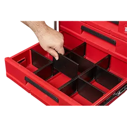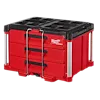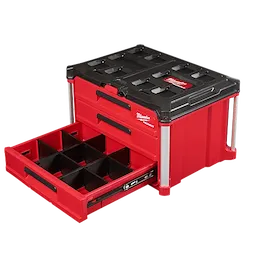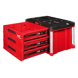 Our PACKOUT™ 3-Drawer Tool Box has a 50lbs weight capacity and a locking security bar that allows you to padlock the drawers closed keeping them securely shut during transport. As part of the PACKOUT™ Modular Storage, the toolbox allows you to customize your storage system for easy transportation and organization of tools and accessories. This portable toolbox with drawers is constructed with impact-resistant polymers, all-metal ball-bearing slides, and metal-reinforced corners for ultimate jobsite durability. The 3-Drawer Tool Box also allows you to customize your drawer layout with Quick-Adjust Dividers (Includes 1 set of dividers). The MILWAUKEE® PACKOUT™ Modular Storage System is the industry's most versatile and durable storage system.