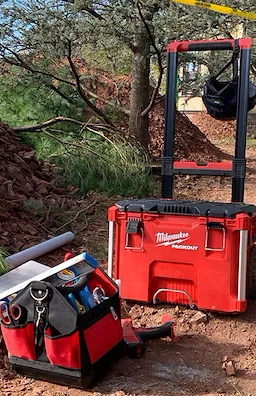 Our PACKOUT™ modular storage system is the industry's most durable and versatile storage system. The PACKOUT™ rolling tool box is constructed with impact resistant polymers and metal reinforced corners so it can withstand harsh jobsite environments. The rolling tool storage box connects with all other PACKOUT™ system components via integrated locking cleats and features a 250 lbs of weight capacity. An industrial-grade extension handle and 9" all-terrain wheels ensure you can roll the tool box anywhere on the jobsite. An IP65 rated weather seal protects your tools and accessories from rain and other jobsite debris. Interior organizer trays allow you to keep equipment organized to fit your needs. Reinforced hinges and carry handle ensure the rolling tool box is easily transportable wherever you need it. Our PACKOUT™ modular storage allows you to customize and build your own storage system to easily transport and organize your tools and accessories.