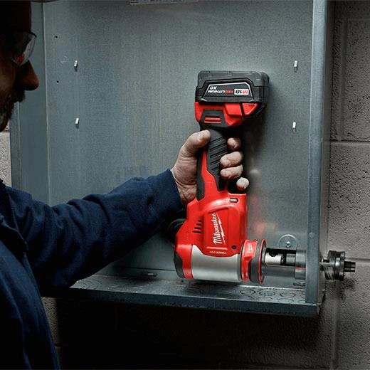 FORCE LOGIC™ is engineered to not only improve upon, but fundamentally change the way high-force tools are used in the field. Through thoughtful design and innovation each tool simplifies a complicated process to deliver the best user experience of its kind. Whether it's the 750 MCM Cable Cutter that has a compact open jaw and a high speed hydraulic pump delivering the fastest installation-ready cuts, or the knockout system that can be set up without the weight of the tool, FORCE LOGIC™always delivers the smartest way to work.Each product within the Milwaukee Knockout System was built upon the principles of reducing the tedious steps of hole making, improving the speed of the process, and limiting the fatigue of the user. The M18 FORCE LOGIC™ 6 Ton Knockout Tool punches up to 4" holes in 14 gauge mild steel, making it ideal for service applications, while the M18 FORCE LOGIC™ 10 Ton Knockout Tool punches up to 4" holes in 12 gauge stainless steel, making it ideal for new commercial and industrial construction. The Quick Connect Alignment System delivers easy set-up without the tool, and speeds up repetitive punching. EXACT™ punches and dies are rated for both mild and stainless steel punching. Plus, EXACT™ dies have both engraved crosshairs for accurate alignment, and slug removal ports for optimal slug removal.