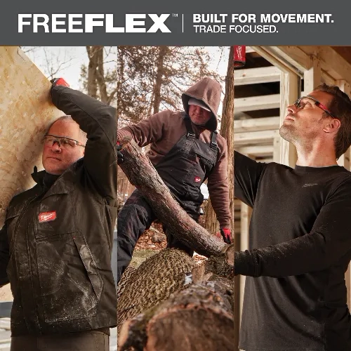 Staying dry and comfortable while working is critical for productivity. MILWAUKEE® WORKSKIN™ solutions include cold and warm weather garments engineered to regulate temperature. Custom yarns and fabrics, designed to be worn next-to-skin, accelerate sweat wicking to stay dry. These performance layers are developed in collaboration with feedback from real users across the trades through continuous jobsite research.FREEFLEX™